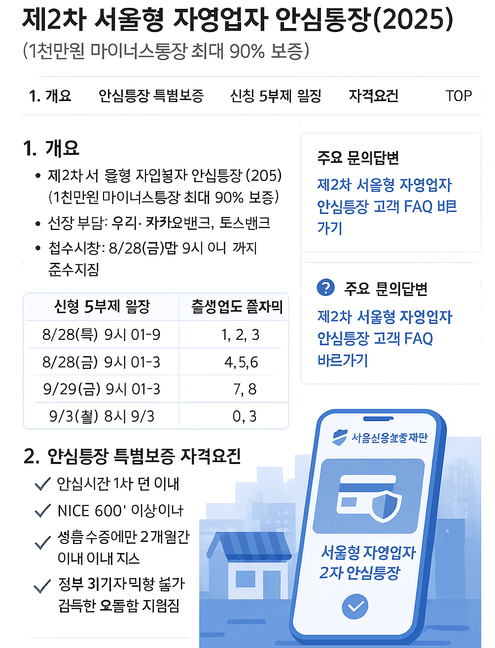 제2차 서울형 자영업자 안심통장 지원사업 공고: 신청방법·자격·금리·FAQ